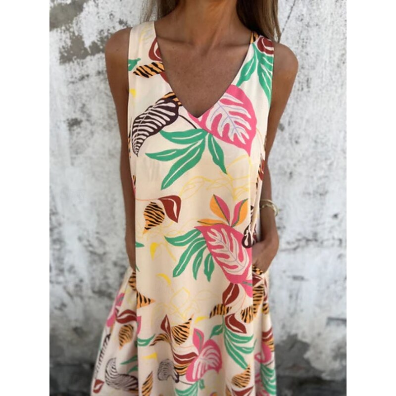 Women's Maxi Dress A Line Dress Slip Dress Vacation Casual Boho Outdoor Going out Regular Fit Floral Sleeveless V Neck Blue Apricot Beige Summer 14