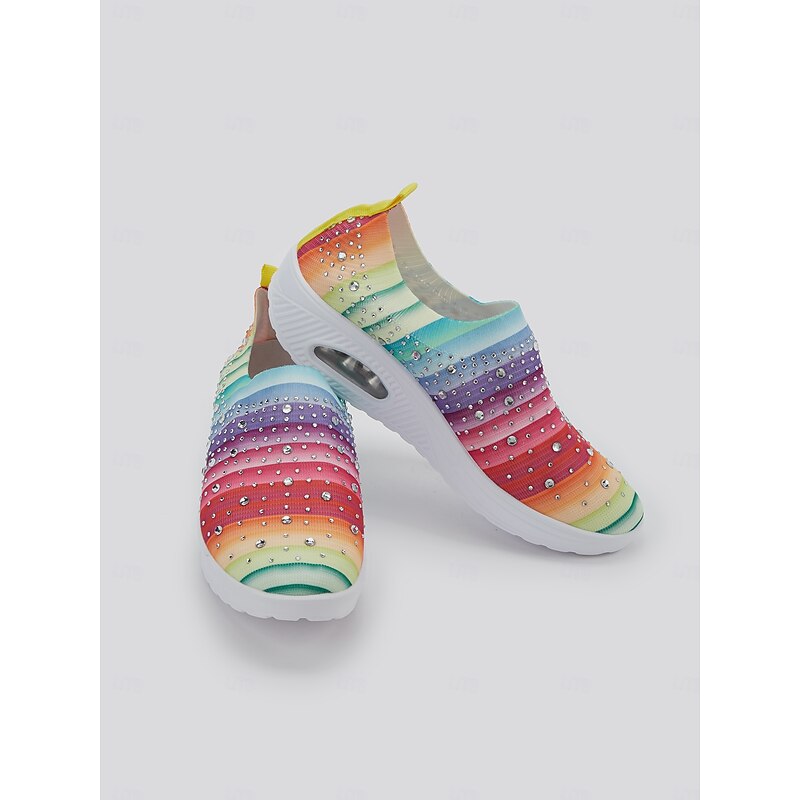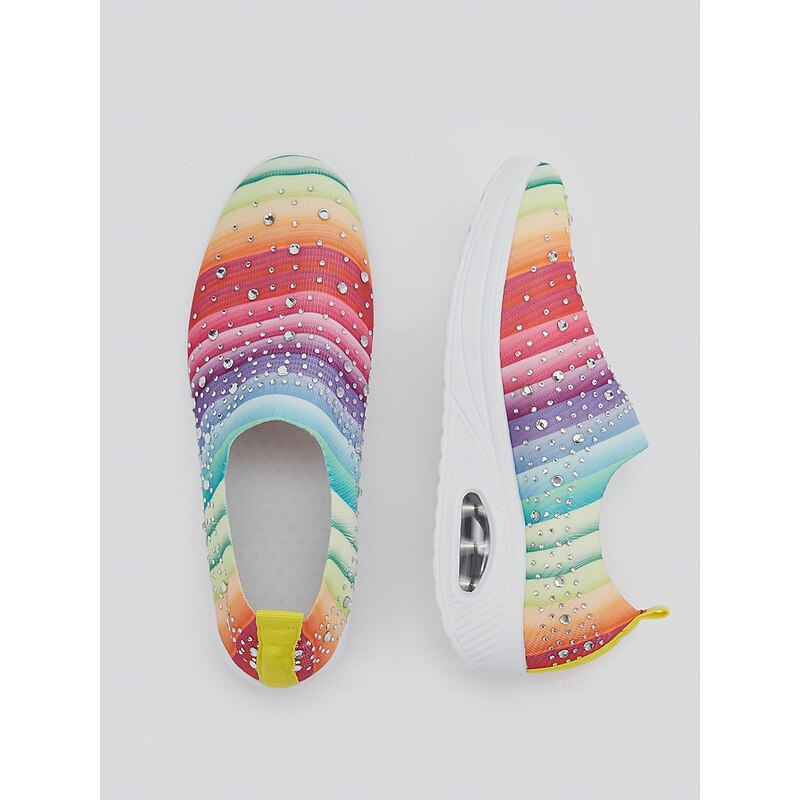 Women's Colorful Rhinestone Slip-On Sneakers – Lightweight Air Cushion Sole Shoes for Casual and Sporty Style 1