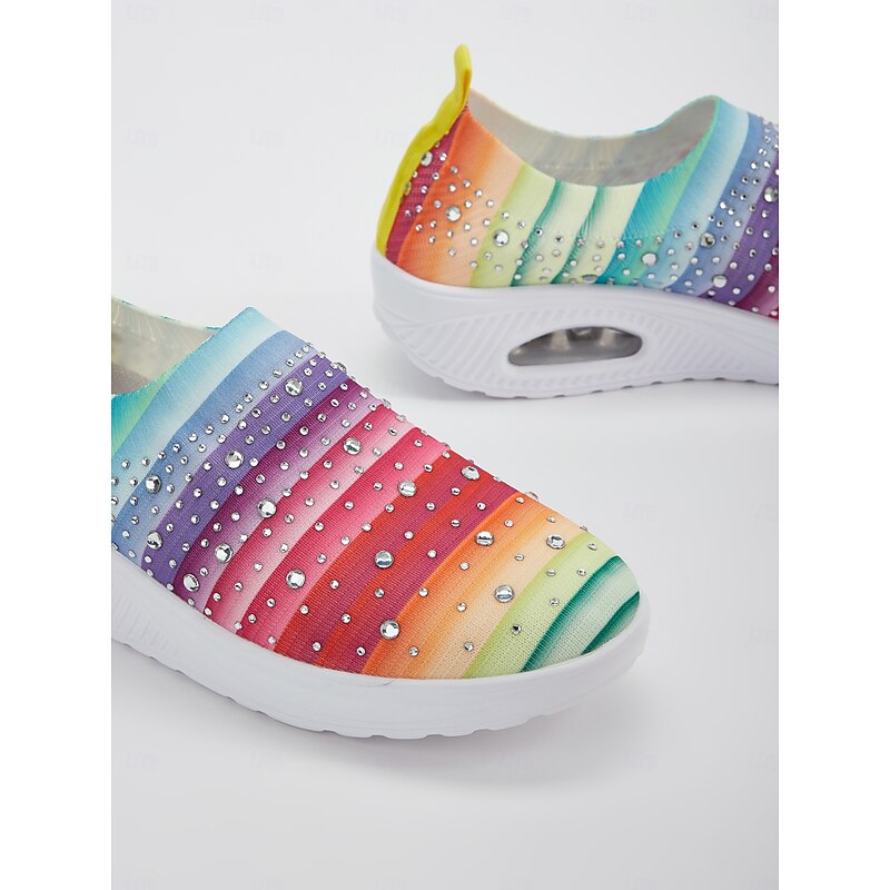 Women's Colorful Rhinestone Slip-On Sneakers – Lightweight Air Cushion Sole Shoes for Casual and Sporty Style 14