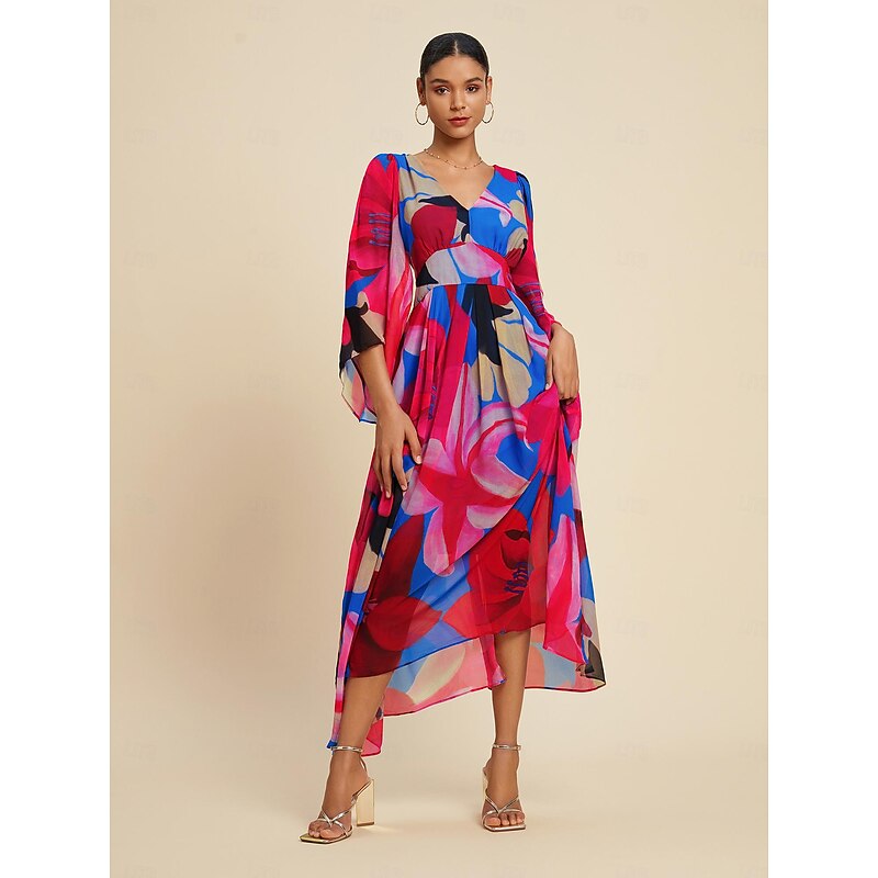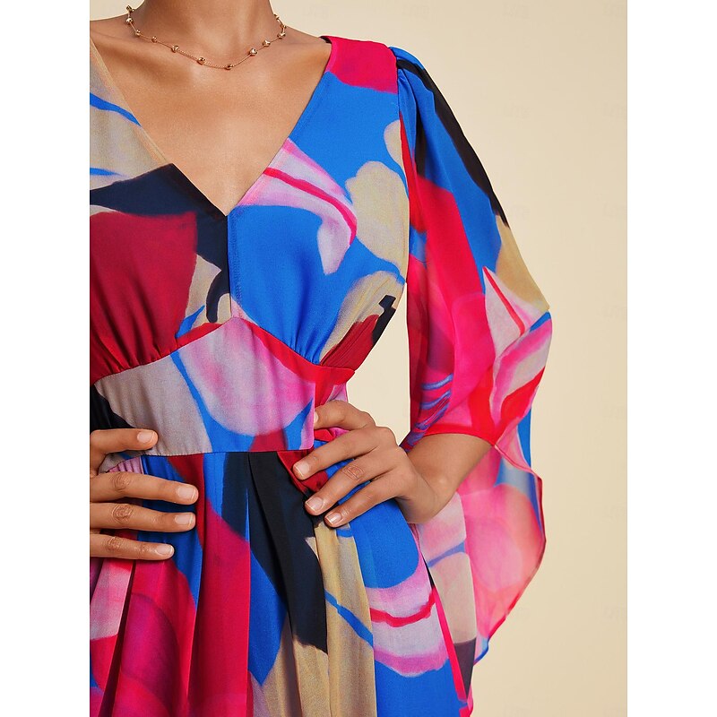 HOT ! Chiffon Floral V Neck Maxi Dress