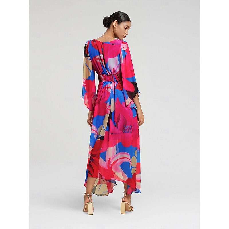 Chiffon Floral V Neck Maxi Dress 3
