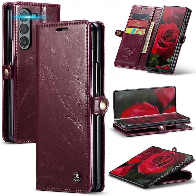HOT ! Phone Case For Samsung Galaxy Z Fold 6 Z Fold 5 Wallet Case Card Slot Shockproof Retro TPU