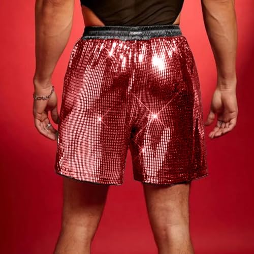 Mens Sexy Metallic Shorts 5" Shiny Holographic Party Disco Short Pants Summer Sparkly Rave Pull On sizzling Shorts