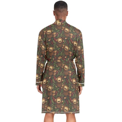 Long Sleeve Sleep Robes for Men-Cartoon Sasquatch, Lightweight Bathrobe with Belt Pockets M 1