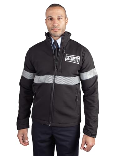 RYNO GEAR Reflective Security Soft Shell Jacket with Stripes and Side Zipper for Duty Belt Access 1