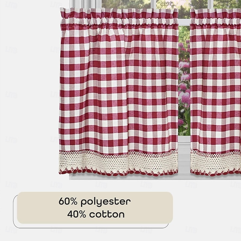 $10.49 - Cafe Curtains with Lace, Christmas Red Checkered Kitchen Short Curtains, Rod Pocket Window Valance Drapes for Café, Bathroom, or Living Room Decor 2025. Shop for cheap Christmas Kitchen online? Buy at lightinthebox.com on sale today!