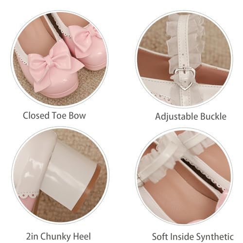 LUXMAX Women Cute Mary Janes with Bow Chunky Heel Kawaii Shoes Sweet Lolita Shoes Mid Heel Cosplay Pumps
