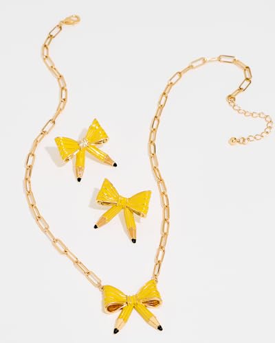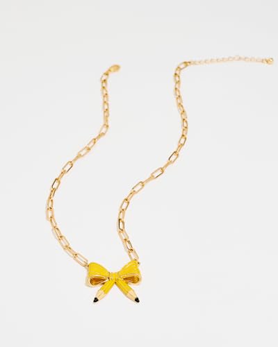 More information about Cute Teacher Necklace For Women Yellow Enamelled Pencil Bow Pendant Necklace With Gold Chain Back To School Teacher Jewelry Gift