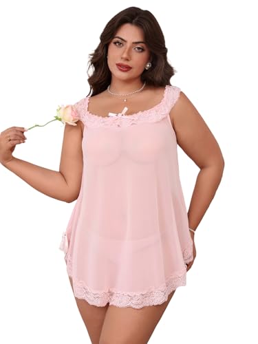 More information about OYOANGLE Women's Plus Size Lace Sheer Chemise Nightgown and Thongs 2 Piece Lace Babydoll Lingerie Set