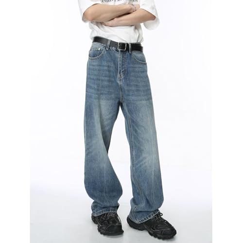 Men's Denim Jeans Korean Style Loose Straight Leg Casual Weekend Daily Commuter Pants for Men 4
