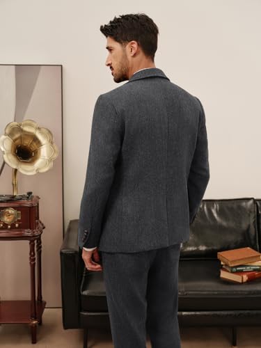 PJ PAUL JONES Men's Casual Blazer Vintage Tweed Wool Blend Suit Notch Lapel Winter Sport Coats Dark Gray 6