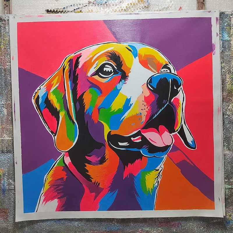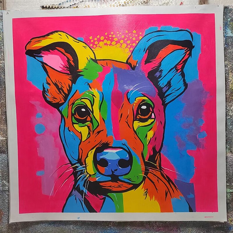 Mintura Handmade Colorful Dog Animals Oil Paintings On Canvas Wall Art Decoration Modern Abstract Cartoon Pictures For Home Decor Rolled Frameless Unstretched Painting 1