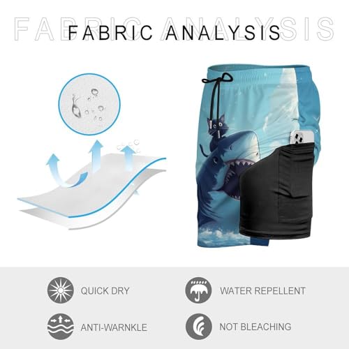 Funny Cat and Shark Mens Swim Trunks Quick Dry Beach Board Shorts with Pockets 5