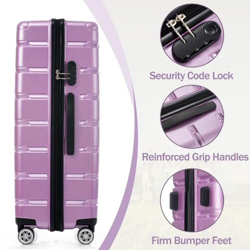 Hardshell Luggage Set 3 Piece, Durable ABS+PC Travel Suitcase with Spinner Wheels (20/24/28 Inch) (Purple) 7