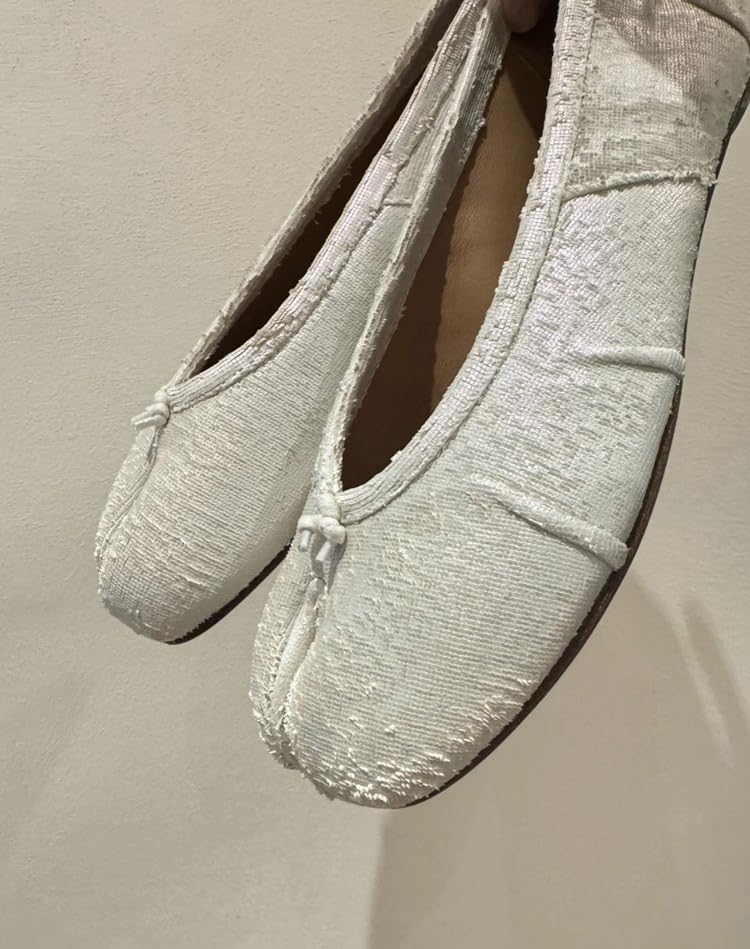 More information about Tabi Split Toe Shoes for Women Genuine Leather Ballet Flats White Crackled Minimalist Comfortable Slip On for Everyday Wear