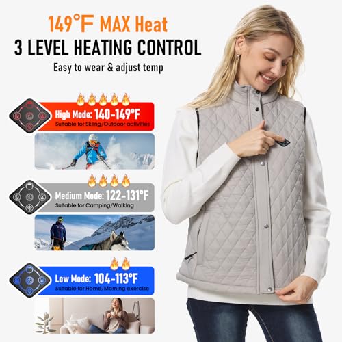 Women Heated Vest with 16000mAh 7.4V Battery Pack, Smart Washable Rechargeable Electric Lightweight Heating Vest Coat 5