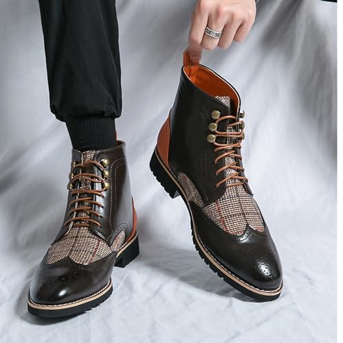 Mens Chukka Boots Pointed Toe Brogue Patchwork Ankle Boots Lace Up Casual PU Leather Shoes for Men 6