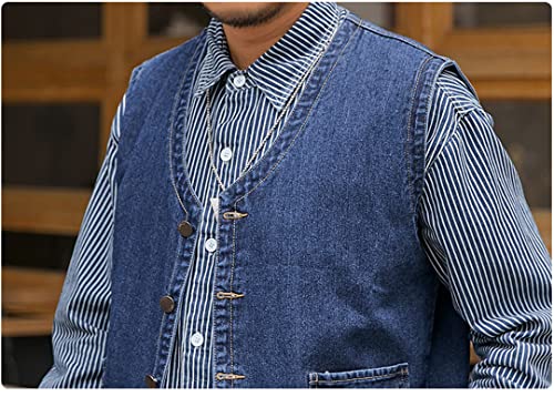 Fulbant Men V-Neck Denim Vest Single Breasted Pockets Jeans 7