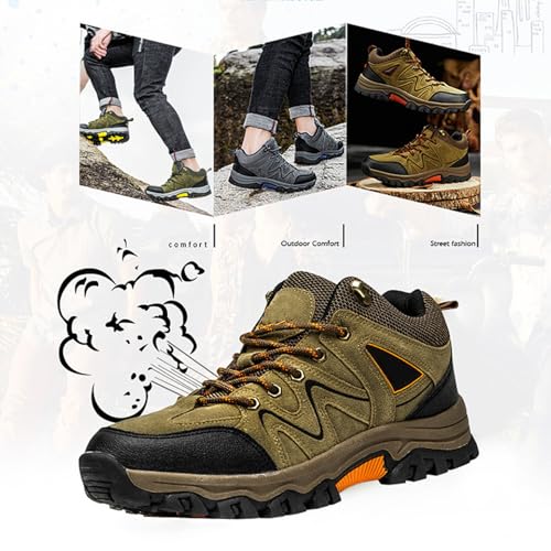 • [ Durable and Breathable ]: The Men's Outdoor Lightweight Breathable Orthopedic Hiking Shoes for men is made of wear-resistant, flexible high-quality leather, which is very suitable for complex outdoor. Breathable mesh and soft moisture-proof insole can keep your feet cool and dry all day long even for a long wear.