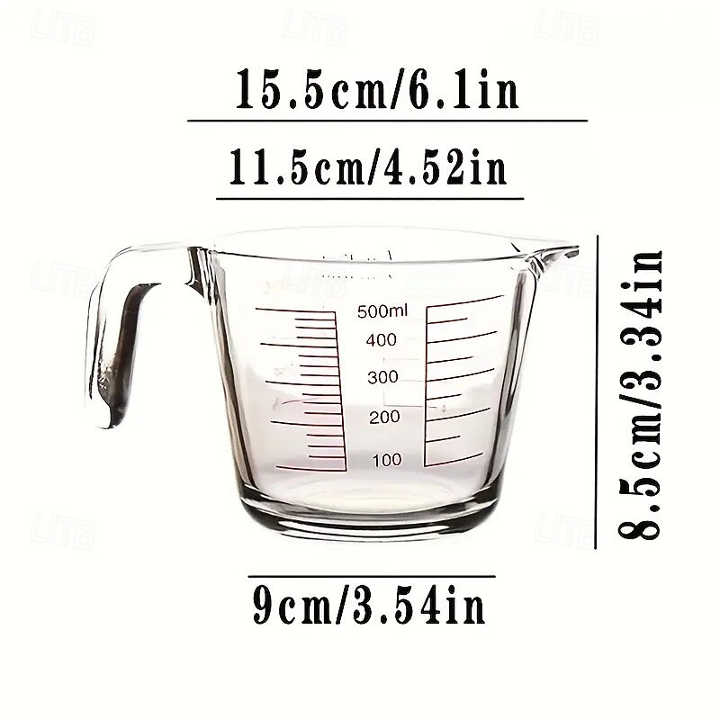 16.91 oz Heat-Resistant Glass Measuring Cup with Handle, Large Capacity Microwave and Oven Safe Kitchen Baking Flour Cup with Measurement Markings 6