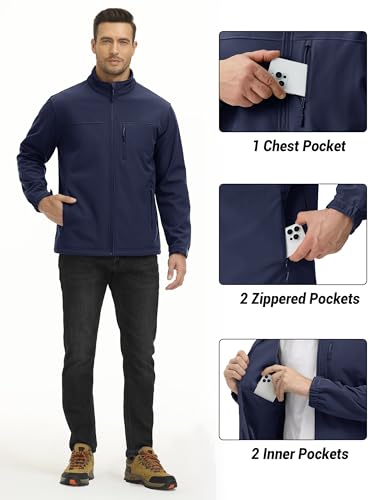 • Waterproof & Breathable——TACVASEN mens softshell jacket features a high-performance waterproof fabric (10,000mm rating) and a breathable lining (5,000g/m²/24hr) to block rain while keeping you dry and comfortable.