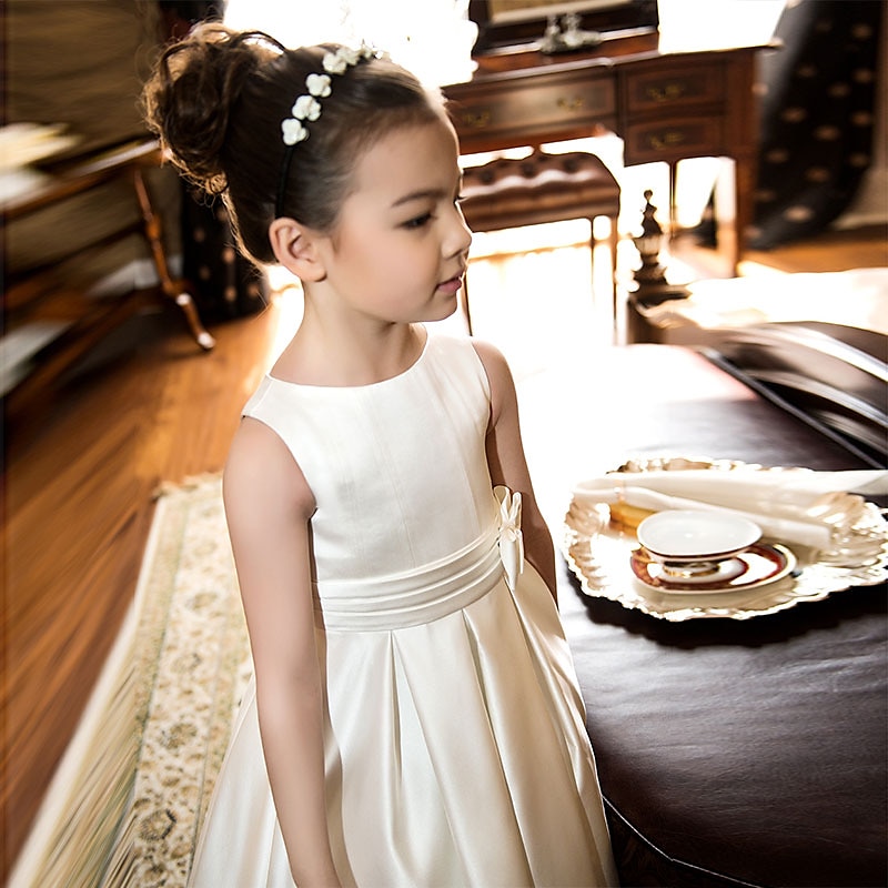 More information about A-Line Ankle Length Flower Girl Dress First Communion Girls Cute Prom Dress Satin with Bow(s) Elegant Fit 3-16 Years dress to impress