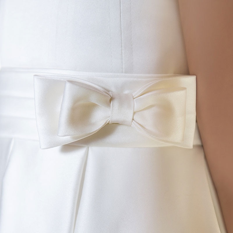 : Crafted from luxurious satin, this flower girl dress offers a subtle sheen and a smooth texture. The fabric's high-quality construction ensures a comfortable fit while maintaining an elegant appearance throughout special events.