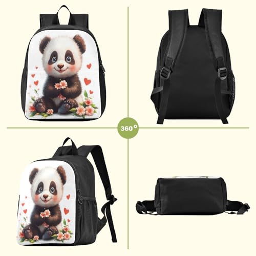 Cute Panda Flowers White Kids Backpack for Boys Girls Lightweight Travel Daypack Rucksack for Kids Elementary 1