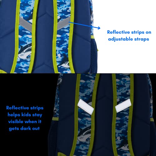 More information about RALME Ocean Blue Camo Shark Backpack Set for Boys, 16 inch, 6 Pieces - Includes Foldable Lunch Bag, Water Bottle, Key Chain, & Pencil Case
