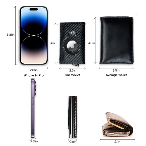 • ✔️Slim & Stylish Design - Crafted from durable carbon fiber, it's perfect for the modern man who values quality and functionality. Ideal as a front pocket wallet for men who prefer a minimalist approach. Our new design uses stronger magnetic features to keep the wallet slim and usable as a front pocket wallet. The airtag holder uses a compact and sturdier closing button for maximum protection and security of the airtag. AirTag are not included