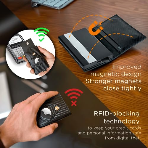 Wallet for Men - Carbon Fiber Credit Card holder and metal AirTag Keychain Slim wallet Magnetic closing and RFID security 1