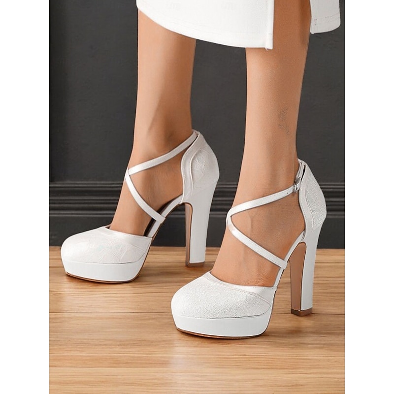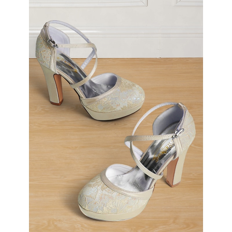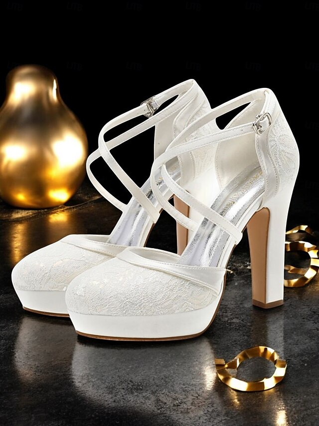 Highlights - Luxurious lace and satin upper materials - Sleek synthetic leather lining for added comfort - Chic buckle embellishment for a sleek touch - Sturdy chunky heel for stability and support - vintage round toe shape for a timeless look - Durable rubber outsole for long-lasting wear