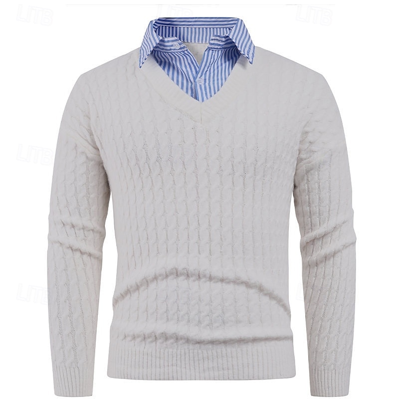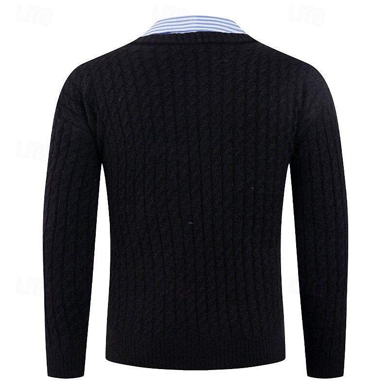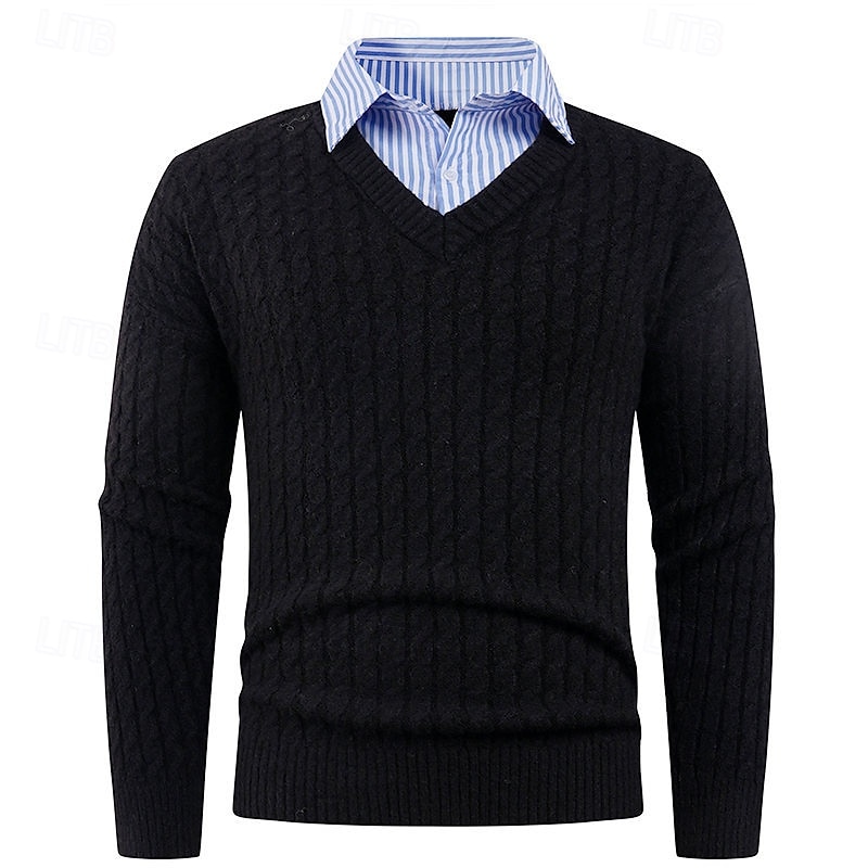 More information about Men's Pullover Sweater Jumper Knit Sweater Ribbed Knit Regular Tops 2 in 1 Knitted Plain Lapel Fashion Basic Vacation Daily Wear Clothing Apparel Fall Winter Black White M L XL