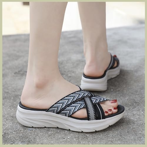 HOT ! Orthopedic Sandals for Women Wide Width, Arch Support Shoes for Women,Comfortable Elastic Large Size Thick Soled Slippers (Black,9-9.5)
