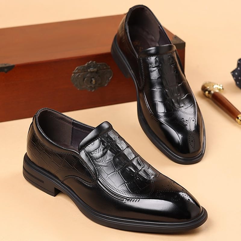 Men's Pointed-Toe Leather Oxford Business Shoes Comfortable Slip-On Retro Casual Formal Derby Dress Shoes 5