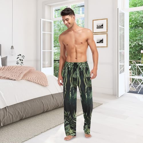 HOT ! Men's Pajama Pants Tropical Plant Leaf Sleep Pajama Lounge Pant with Pockets, Elastic Waistband
