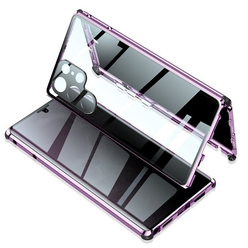 Phone Case For Samsung Galaxy S25 S24 S23 S22 S21 Ultra Plus Magnetic Adsorption Bumper Frame Magnetic Full Body Protective Solid Colored Tempered Glass Metal 1