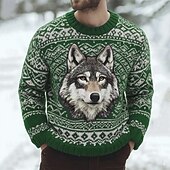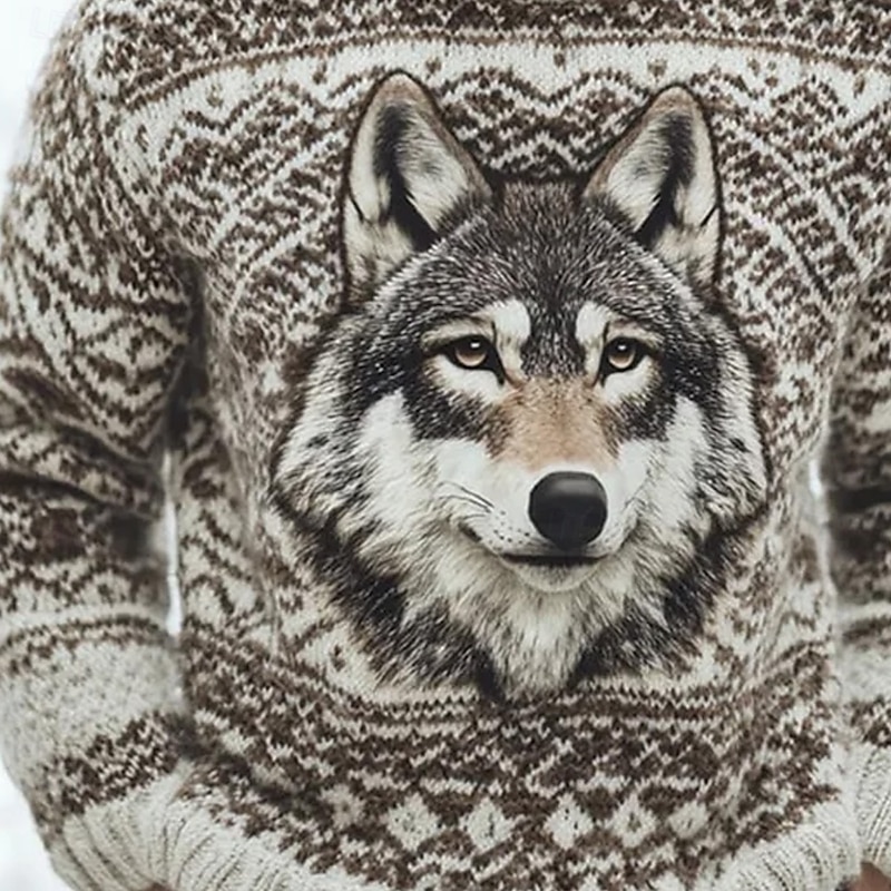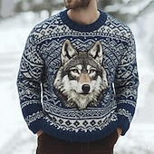 More information about Men's Wolf Fair isle Sweater Pullover Sweater Jumper Knitwear Crewneck Casual Vacation Daily 3D Print Keep Warm Long Sleeve Spring Fall Winter Blue Purple Brown