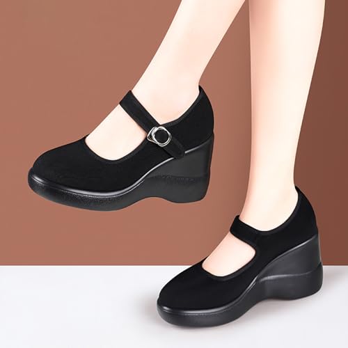 Origin: ImportedSole material: PolyurethaneOuter material: CanvasClosure type: BuckleStylish and Comfortable Design: These women's wedge mary jane shoes feature a platform wedge design, combining fashion with function. The round toe offers a roomy and comfortable fit, while the ankle strap provides added support and a secure feel.Lightweight and Orthopedic: These wedges are made from lightweight materials so they won't weigh you down. They also incorporate orthotics for those with foot problems. The engineered sole supports your feet and reduces fatigue, so you can walk in comfort and style.Height-Increasing Wedge: Enjoy a boost in height with the platform wedge, adding a touch of elegance to your outfit. The wedge height is carefully designed to give you a flattering lift without sacrificing stability. Heel height is approximately 3.54 inches.Versatile Casual Wear: These wedge pumps are a great addition to your casual wardrobe. Pair them with jeans, dresses, or skirts for a variety of looks. The classic Mary Jane style makes them suitable for different occasions, from shopping trips to outdoor gatherings.Durability: Made with high - quality materials, these shoes are built to last. The sturdy construction ensures they can withstand daily wear and tear. You can trust in the quality of these shoes to be both fashionable and long lasting. Perfect for everyday use. premium materials and excellent craftsmanship ensure long-lasting durability.