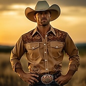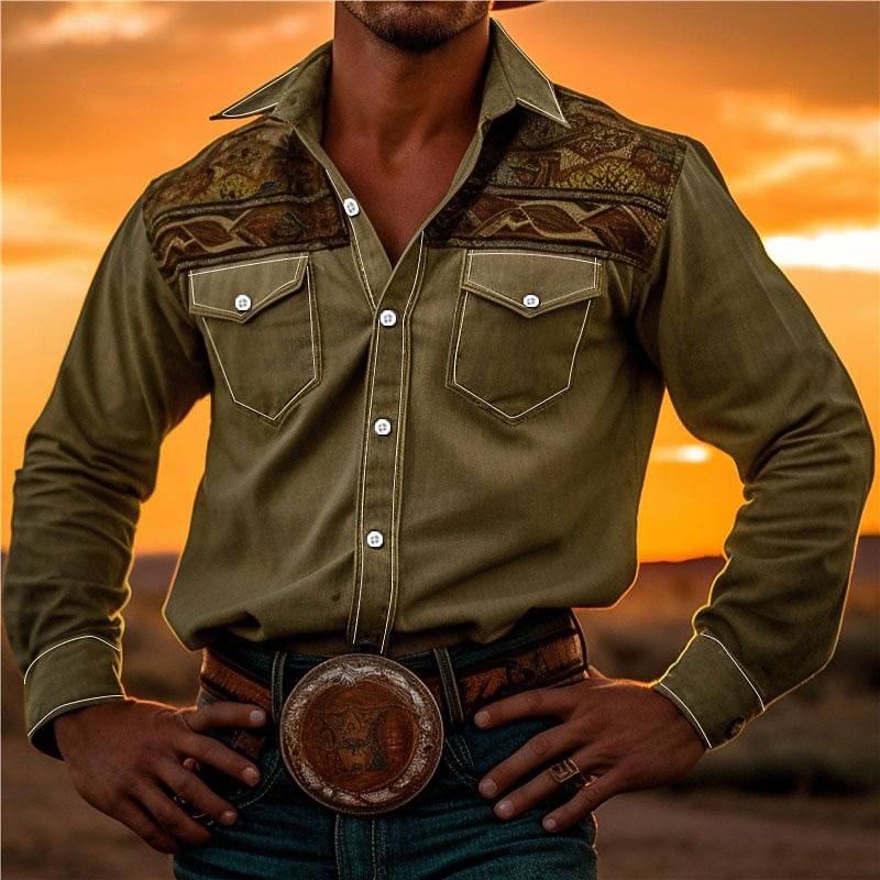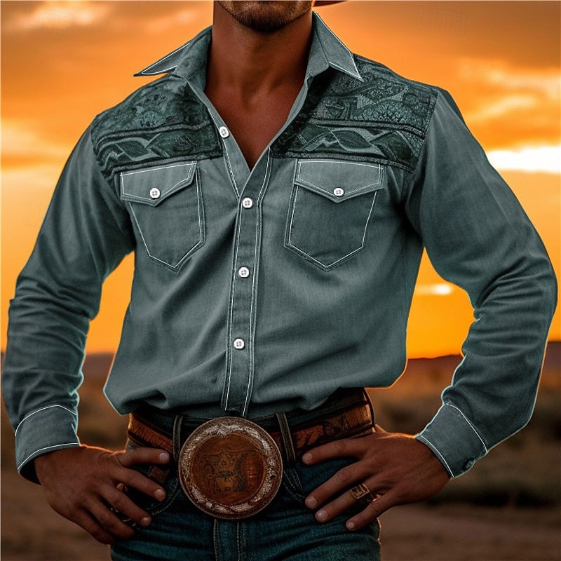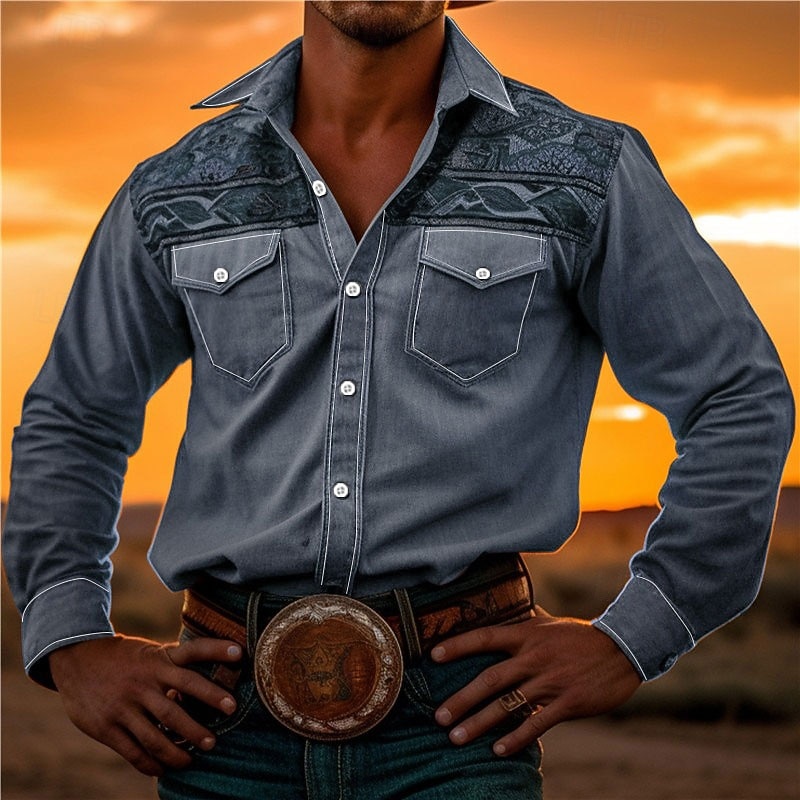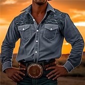 More information about Men's Tribal Bandana Print Shirt Western Shirt Long Sleeve Shirt Turndown Vintage Outdoor Street Casual Daily Pink Red Blue S M L