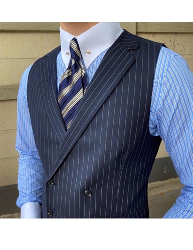 Men's Pinstripe Suit Double Breasted Vest Pants 2 Piece Set Lightweight Slim Fit Casual Formal 4