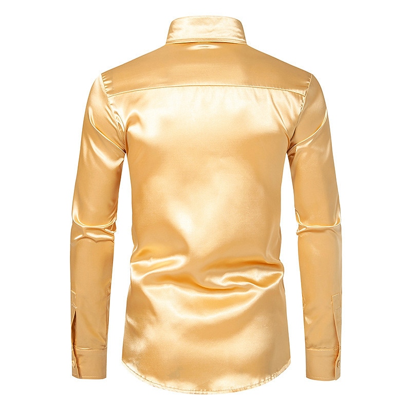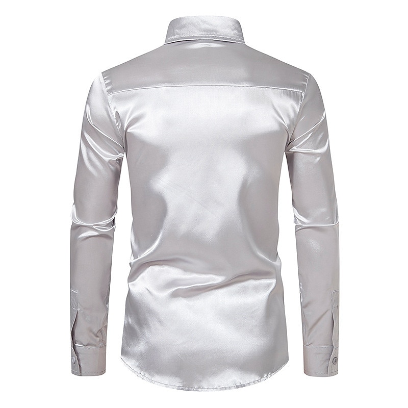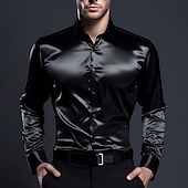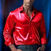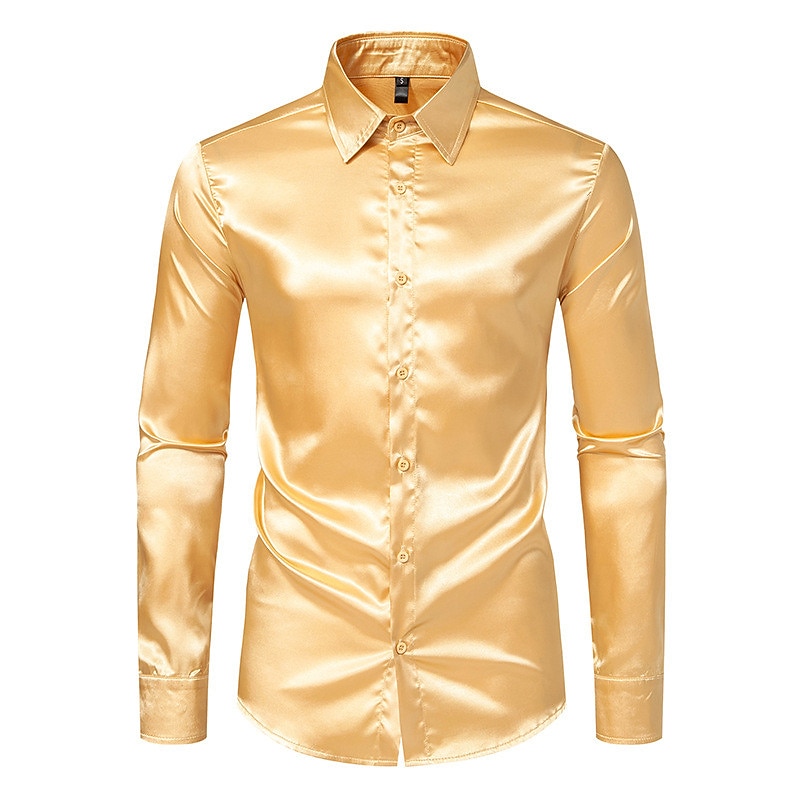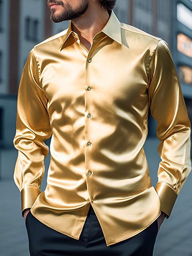 More information about Men's Shirt Satin Shirt Casual Shirt Button Up Shirt Black Yellow Blue Red Light Grey Long Sleeve Plain Lapel Vacation Daily Clothing Apparel Fashion Casual Comfortable