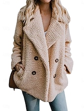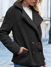 More information about Women's Fleece Jacket Teddy Coat Warm Breathable Pocket Fleece Lined Casual Plain Vacation Street Daily Wear Going out Double Breasted Regular Turndown Regular Fit Long Sleeve Outerwear Black Pink