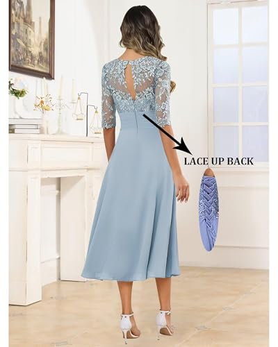 Mother of The Bride Dresses Lace Appliques Chiffon Half Sleeve Pleated Tea Length Mother of Groom Dresses for Women 6
