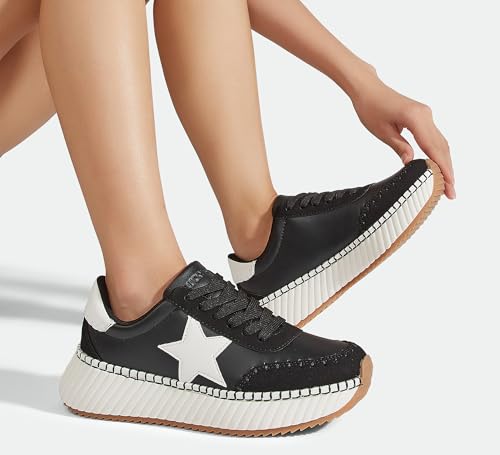 LUCKY STEP Women's Star Platform Sneakers Fashion Chunky Retro Trendy Casual Tennis Running Trainning Walking Shoes 1