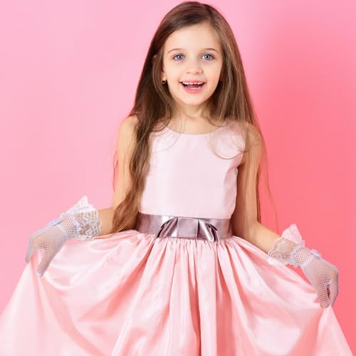 4 Pairs Tea Party Gloves for Little Girls Kids Lace Short White Satin Princess Dressing Gloves with Bows for Party 7