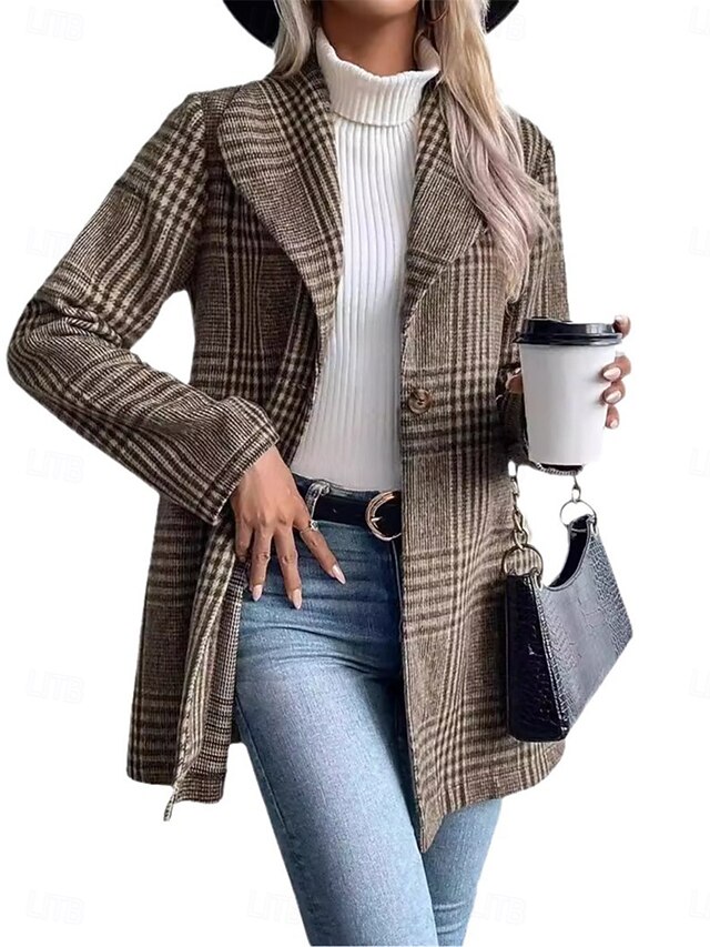 Highlights [Fabric] : Crafted from a high-quality blend of wool and polyester, this women's casual jacket ensures both thermal warmth and breathability, making it an excellent choice for the cooler months. The micro-elastic property of the fabric offers a comfortable and flexible fit. [Fit] : Designed with a regular fit, this jacket provides a streamlined yet relaxed silhouette, ideal for layering over various outfits. The long sleeves and mid-thigh length add to its versatility, allowing it to complement both casual and professional attire. [Design Highlights] : This jacket features a classic turn-down collar and a single-breasted button closure for a timeless appeal. The trendy print combines stripes and plaid patterns in red, camel, and gray hues, creating an eye-catching look. The inclusion of practical pockets enhances its functionality and convenience. [Occasions] : Perfect for daily wear, street outings, and outdoor adventures, this jacket is a must-have for fall and winter wardrobes. Effortlessly create chic ensembles by pairing it with jeans and a turtleneck sweater, and complete your look with a wide-brim hat and a sleek handbag. [Size Range] : Available in sizes S, M, L, and XL, this jacket caters to a range of body types, ensuring you find the perfect fit for your style and comfort needs. Perfect for everyday use. top-grade materials and excellent craftsmanship ensure long-lasting durability.
