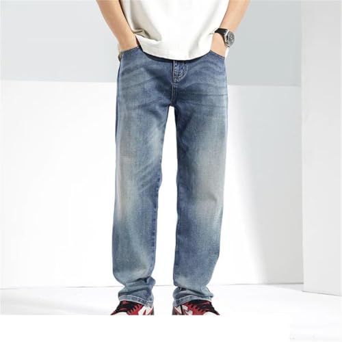 HOT ! Men Spring Summer Baggy Jeans Straight Loose Lyocell Stretch Male Denim Wide Leg Pants