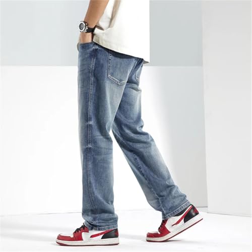 Men Spring Summer Baggy Jeans Straight Loose Lyocell Stretch Male Denim Wide Leg Pants 5