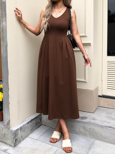 • Eye-Catching Design: This casual dress highlights pleated waist design, a figure-enhancing high waist, sleeveless, v neckline, a flowing midi length skirt, and a relaxed silhouette. There are also pockets on either side, which is a practical feature and also adds a casual element to the dress